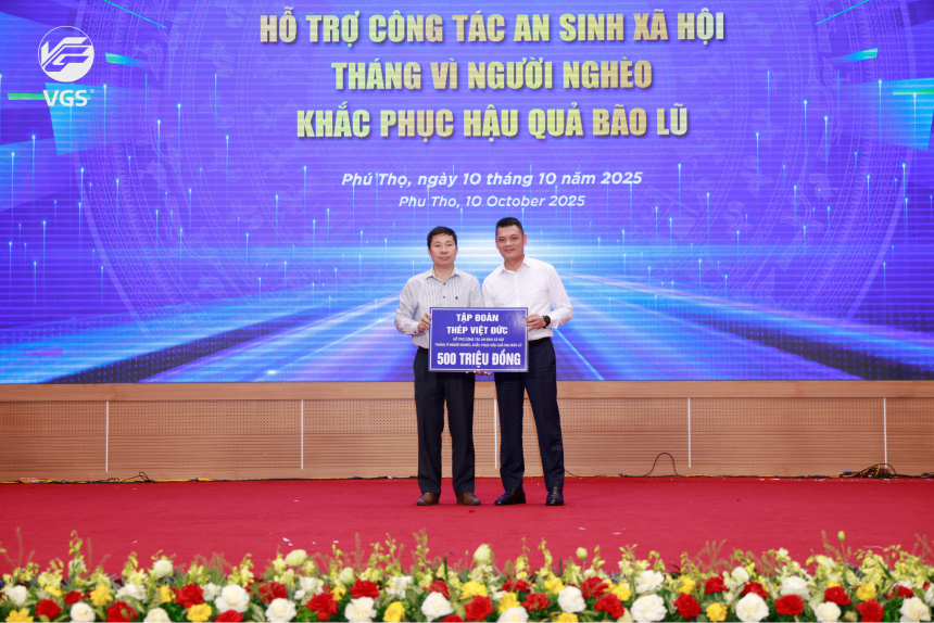 Ngày mùng 10 tháng 10 năm 2025, Thép Việt Đức đã ủng hộ 500.000.000 VNĐ nhằm hỗ trợ công tác khắc phục sau bão lũ, góp phần tái thiết hạ tầng, ổn định đời sống cho người dân vùng bị ảnh hưởng. Sự hỗ trợ này không chỉ thể hiện tấm lòng sẻ chia của tập thể Thép Việt Đức mà còn là cam kết đồng hành cùng chính quyền và nhân dân trong những thời điểm khó khăn nhất.